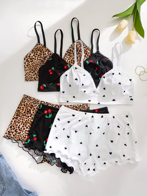 3 Juegos de Conjuntos de Sujetador (Bra) con Volantes Estampados y Color Sólido para Mujer